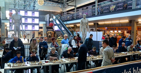 I suggested to Pete that it must have been disconcerting playing with those naked statues staring over his shoulder! Pete reports "What was more disconcerting was the 15min preamble by organisers in Czech - I had no clue what was said! I lost in around 16 moves, the general standard and interest amongst the locals seemed very good."